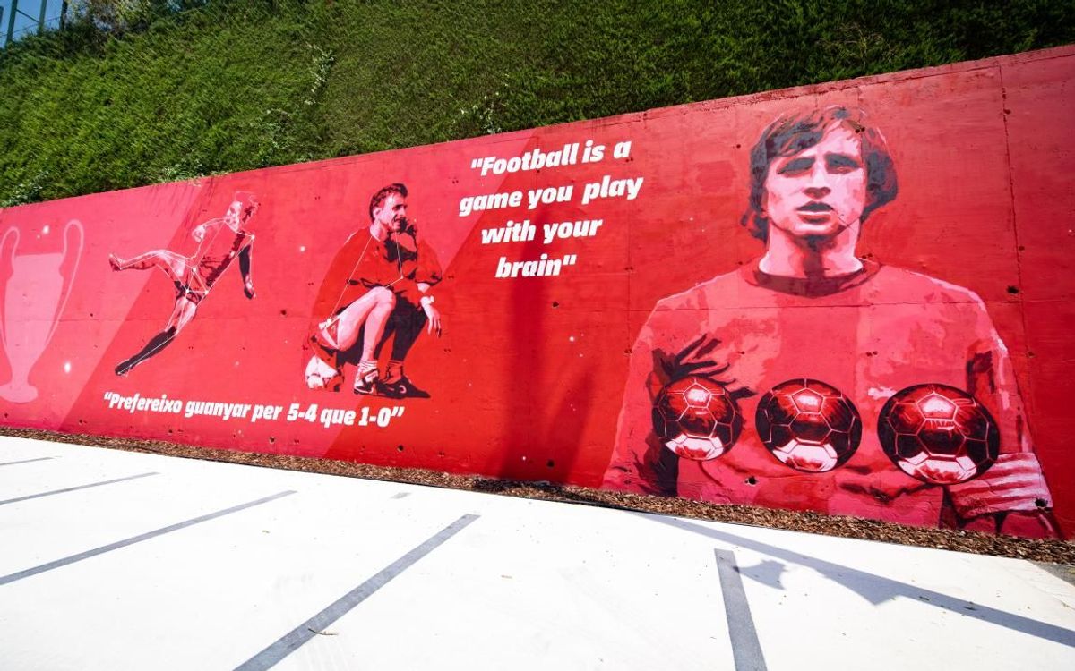 クラブ総合練習場にラ・マシアとヨハン・クライフを讃える壁画